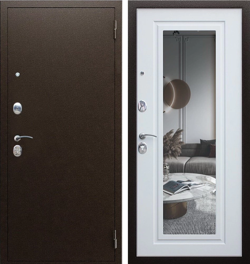 Надежная входная Дверь Комфорт с зеркалом премиум класса по цене 30 467 руб. Большая толщина стали защитит от проникновения в ваш дом, квартиру или коттедж. Используется очень качественная фурнитура: замки, цилиндры, ручки, защелки. Покрытие и отделка двери изготовлено под внимательным контролем производителя. Дверь имеет долгий срок службы и гарантию.